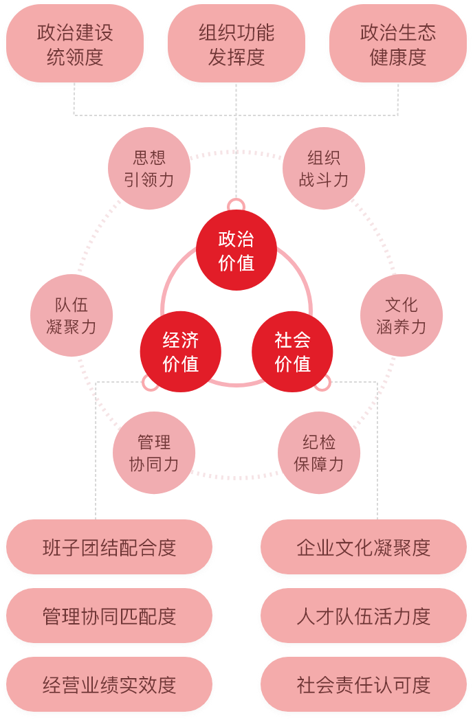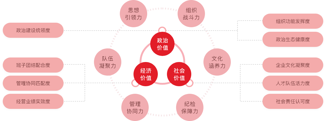 “价值党建”——即国有企业党建工作要紧紧围����� �������Ƴ������������ �������Ƴ������������ �������Ƴ������������ �������Ƴ�������绕国企政治、经济、社会“三个责任”,牢����� �������Ƴ������������ �������Ƴ������������ �������Ƴ������������ �������Ƴ�������固树立价值导向,以做强做����� �������Ƴ������������ �������Ƴ������������ �������Ƴ������������ �������Ƴ�������优做大国有企业为目标,通过����� �������Ƴ������������ �������Ƴ������������ �������Ƴ������������ �������Ƴ������党建工作与生产经营“双向嵌入、互相����� �������Ƴ������������ �������Ƴ����������� �������Ƴ������������ �������Ƴ�������融合”,充分发挥企业党组织把方向、管大局����� �������Ƴ������������ �������Ƴ����������� �������Ƴ������������ �������Ƴ�������、保落实作用,最大程度上激发党����� �������Ƴ������������ �������Ƴ������������ �������Ƴ������������ �������Ƴ�������建工作效能和价值创造能力����� �������Ƴ������������ �������Ƴ������������ �������Ƴ������������ �������Ƴ������,不断引领企业高质量发展,确保����� �������Ƴ������������ �������Ƴ������������ �������Ƴ������������ �������Ƴ�������国有企业成为我们党赢得具有许����� �������Ƴ����������� �������Ƴ����������� �������Ƴ����������� �������Ƴ�������多新的历史特点的伟大斗争����� �������Ƴ����������� �������Ƴ������������ �������Ƴ����������� �������Ƴ������胜利的重要力量。“价值党建”核心理����� �������Ƴ������������ �������Ƴ������������ �������Ƴ������������ �������Ƴ�������念是:“三个价值”、“六����� �������Ƴ������������ �������Ƴ������������ �������Ƴ����������� �������Ƴ�������个路径”和“九个维度”。