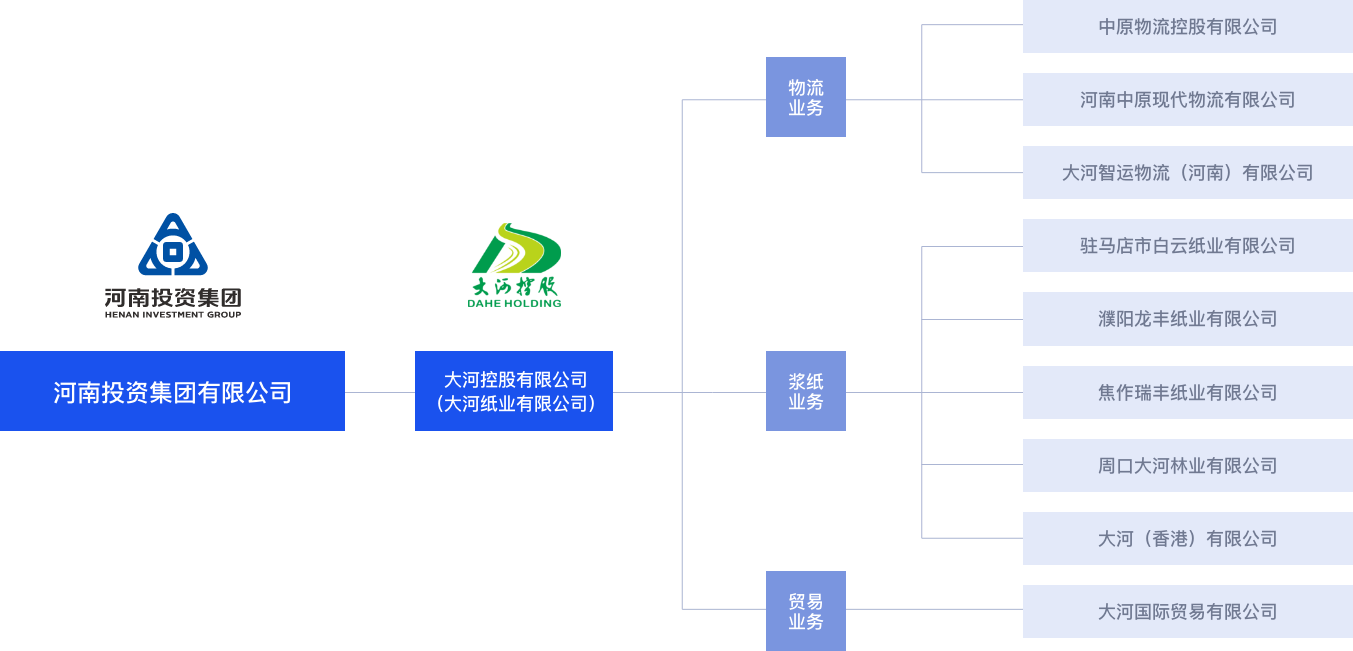 大河控股有限公司(以下简称“大河����� �������Ƴ������������ �������Ƴ������������ �������Ƴ������������ �������Ƴ�������控股”)成立于2021年8月, 是在大河纸����� �������Ƴ����������� �������Ƴ������������ �������Ƴ������������ �������Ƴ�������业有限公司的基础上组建的专业化投资运营平����� �������Ƴ����������� �������Ƴ������������ �������Ƴ������������ �������Ƴ�������台公司, 是河南投资集团有����� �������Ƴ������������ �������Ƴ������������ �������Ƴ������������ �������Ƴ�������限公司下属的全资子公司。承����� �������Ƴ������������ �������Ƴ������������ �������Ƴ������������ �������Ƴ�������担河南投资集团浆纸、物流、贸易资产管理和运营,����� �������Ƴ������������ �������Ƴ������������ �������Ƴ������������ �������Ƴ�������下属控股企业8家。